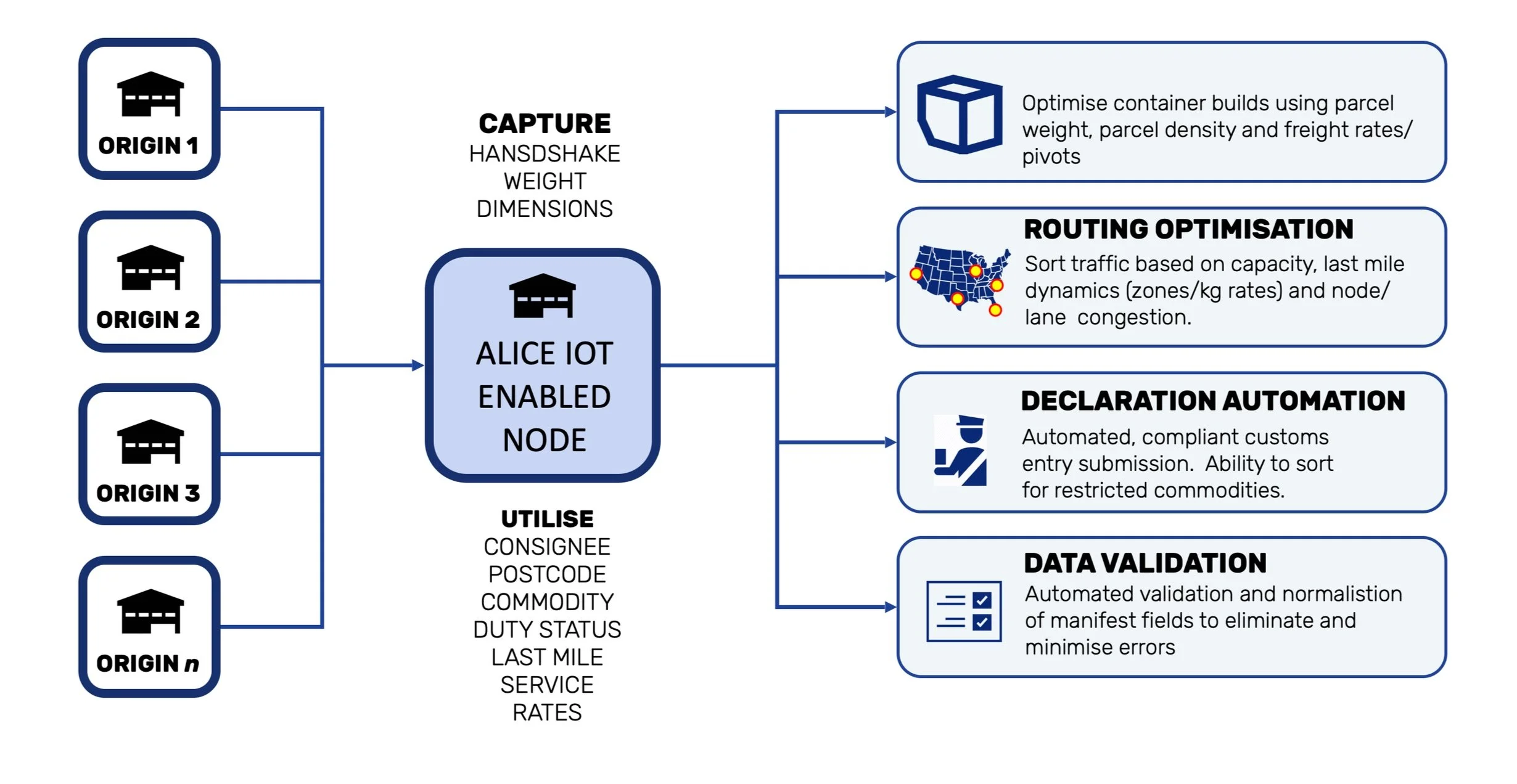 To get your traffic quickly and efficiently to the USA it is worth checking that your provider is fully compliant with US CBP regulations and that you do not, unwittingly, fall foul of the US ‘Customs Business’ regulations. Ideally your provider will be operating and Alice IOT integrated node in their handling facility. If they are you can be very confident that you are receiving the best possible service for your US destined eCommerce parcels.
