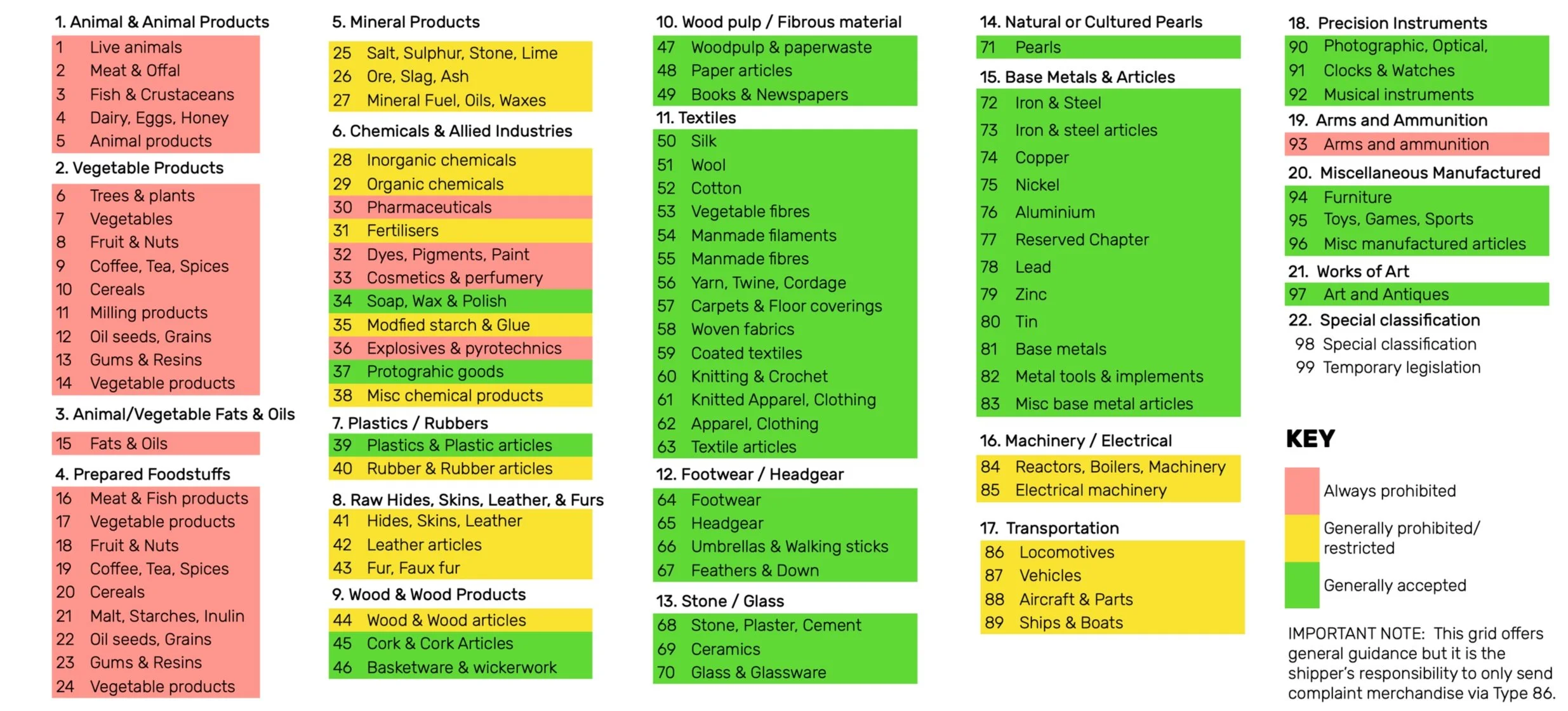 A QUICK VISUAL VISUAL GUIDE TO WHAT CAN AND CAN’T BE SENT TYPE 86